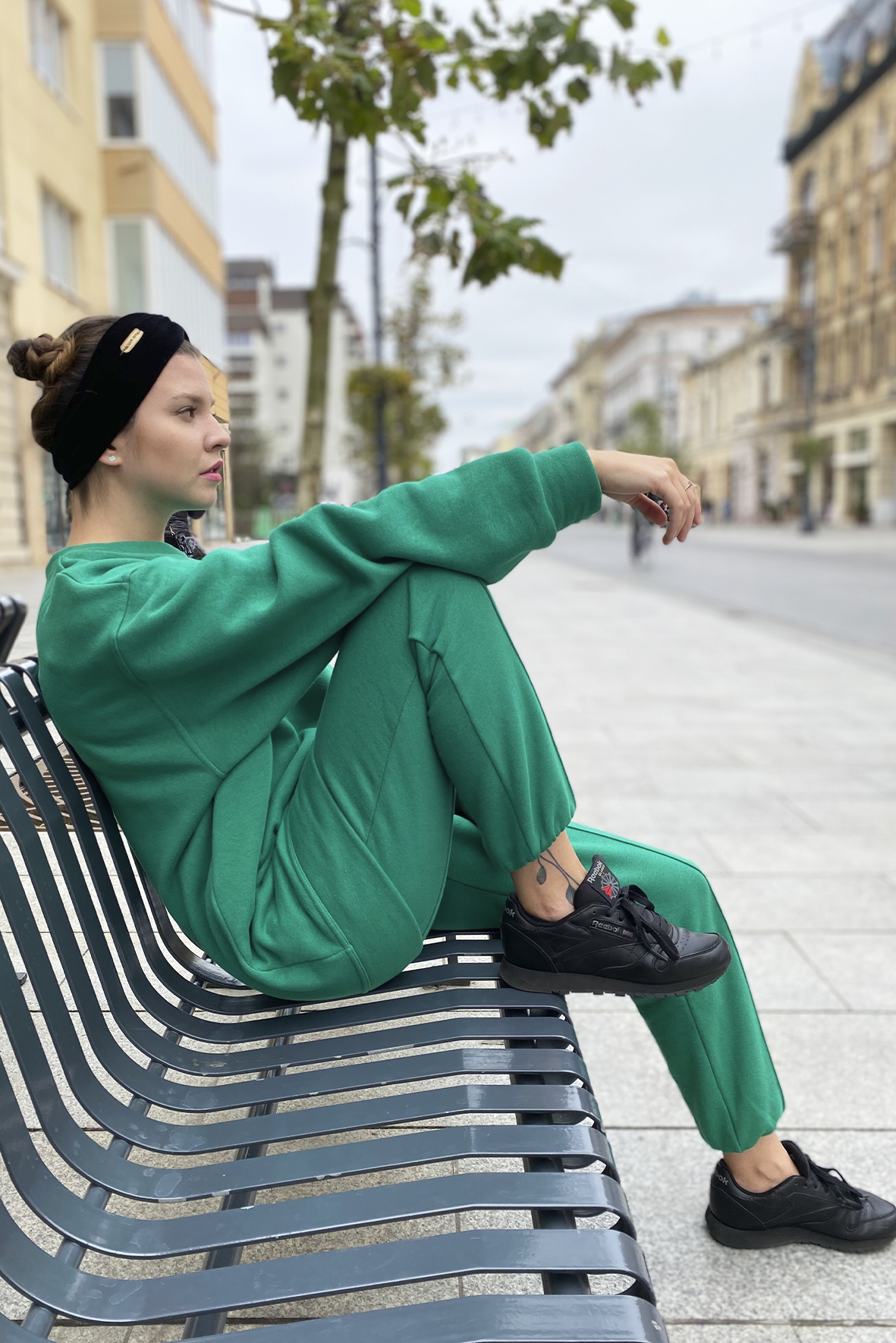 Spodnie City– dzianinowe spodnie z długimi, zwężanymi nogawkami. Dwie boczne kieszenie na wysokości bioder. Szeroka, marszczona guma w pasie podkreślająca talię. Dostępne w rozmiarze oversize. Noś je do sportowego obuwia, szpilek lub śniegowców. Łącz je z naszą Bluzą City i ciesz się wygodą oraz stylowym out fitem!